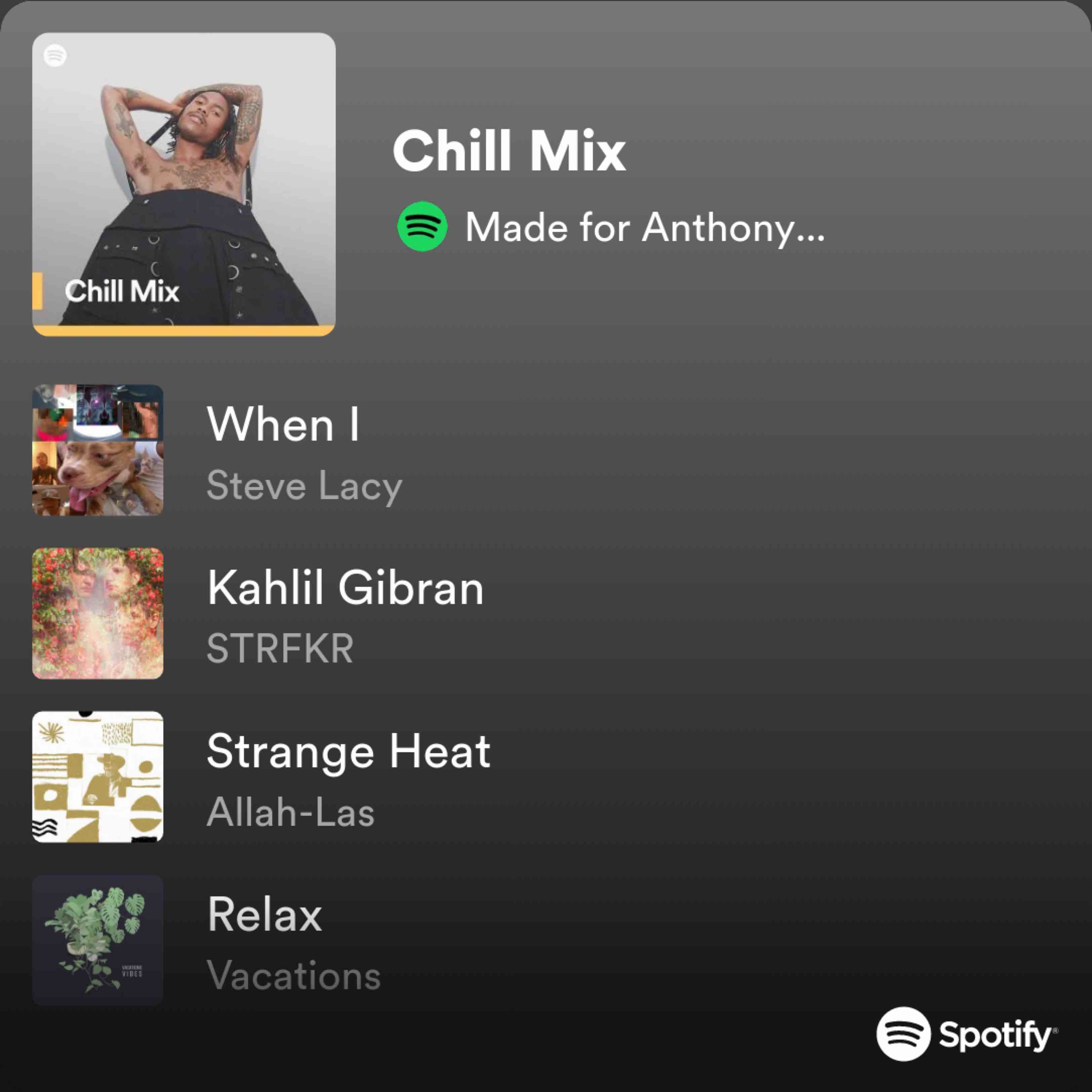 Music - My “Chill Mix” on Spotify has been V chill. I’m going to paste the link but you let me know if you get the same place list as I do. I think if you click on the list, Spotify will auto change the list to your listening style. Let me know, regardless, enjoy!