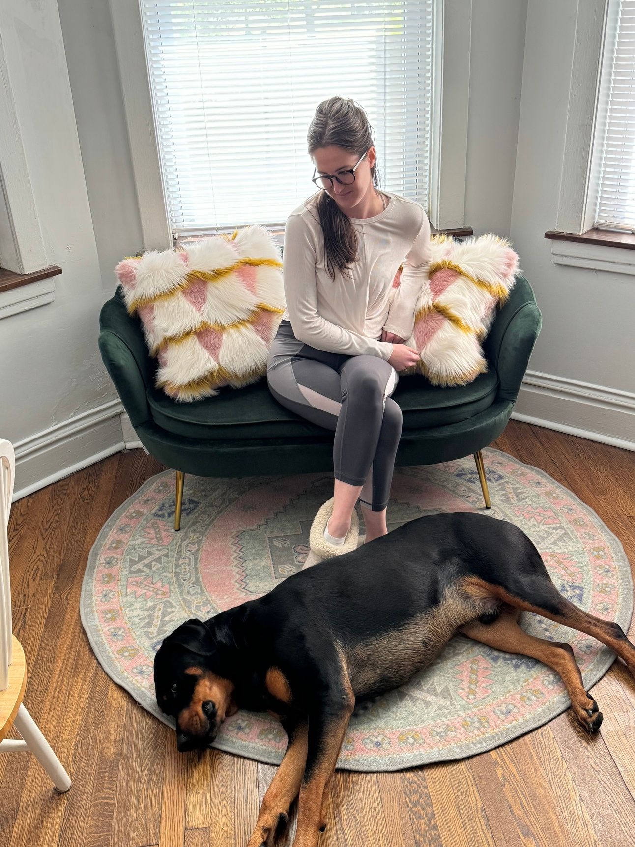 Shout out to Lilys Mom Colleen for finding this fun awesome cozy couch with Pillows and rug. It was became Auggie’s Favorite couch in the apartment!